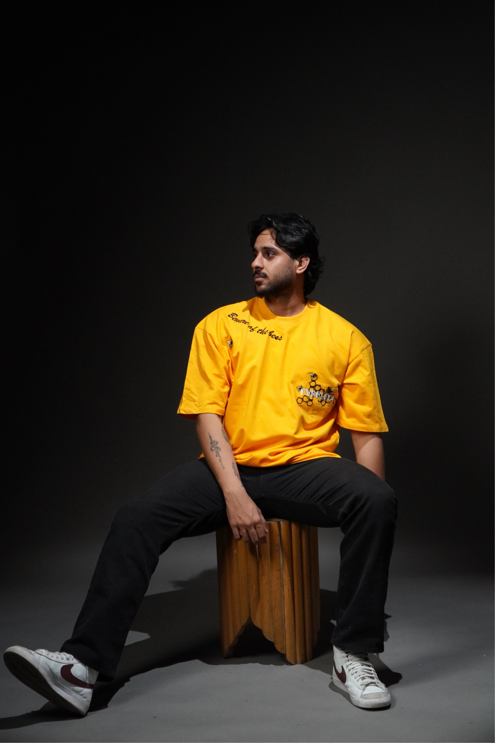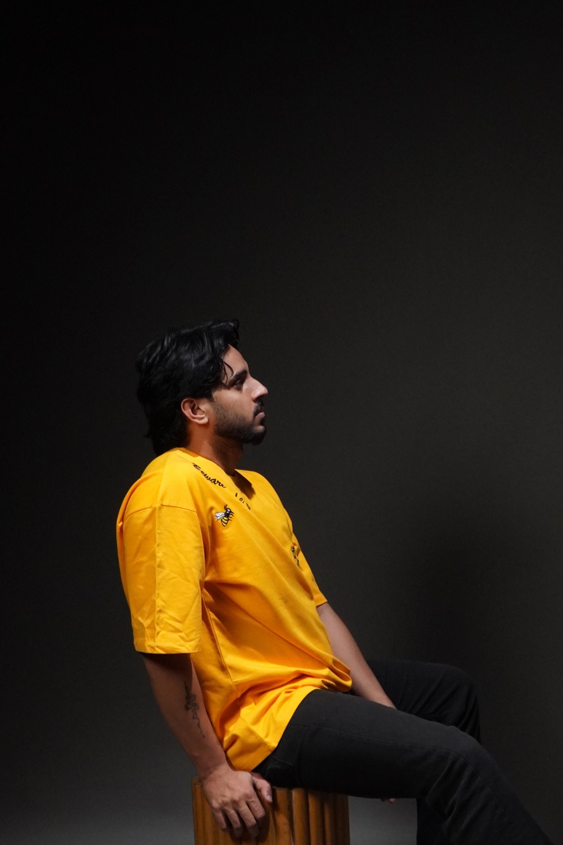 Loud, fearless, and dripping with attitude — the Beware of the Bees tee is pure street art on fabric. Crafted from 240 GSM 100% terry cotton, this mustard yellow piece features intricate embroidered bees and floral detailing across the back, symbolizing power, motion, and individuality. Designed for those who dare to stand out, not blend in.